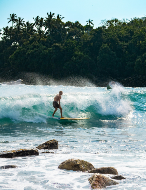 Beyond the calm of Beldon, Hiriketiya Bay reveals the easy rhythm that draws travellers back year after year. One of Sri Lanka’s most loved surf beaches, this small, curved bay is known for its consistent waves, relaxed energy, and vibrant café culture that unfolds from morning through sunset. Days here move effortlessly between the ocean, good food, and the simple pleasures of coastal living.